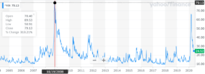El VIX es un índice que mide la volatilidad en los mercados en una escala de 1 a 100. Es una especie de “sismógrafo” financiero. En octubre de 2008 con la crisis de hipotecas subprime el VIX alcanzó 89.53 puntos. Siendo hasta mayo de 2009 (7 meses después) que bajó de los 30 puntos. El 16 de marzo de 2020 con la pandemia, el cierre de varias economías y la crisis de los precios del petróleo, el VIX alcanzó un nivel intradía de 85.47 puntos, tocando en la segunda semana de mayo (7 semanas después) los 30 puntos.